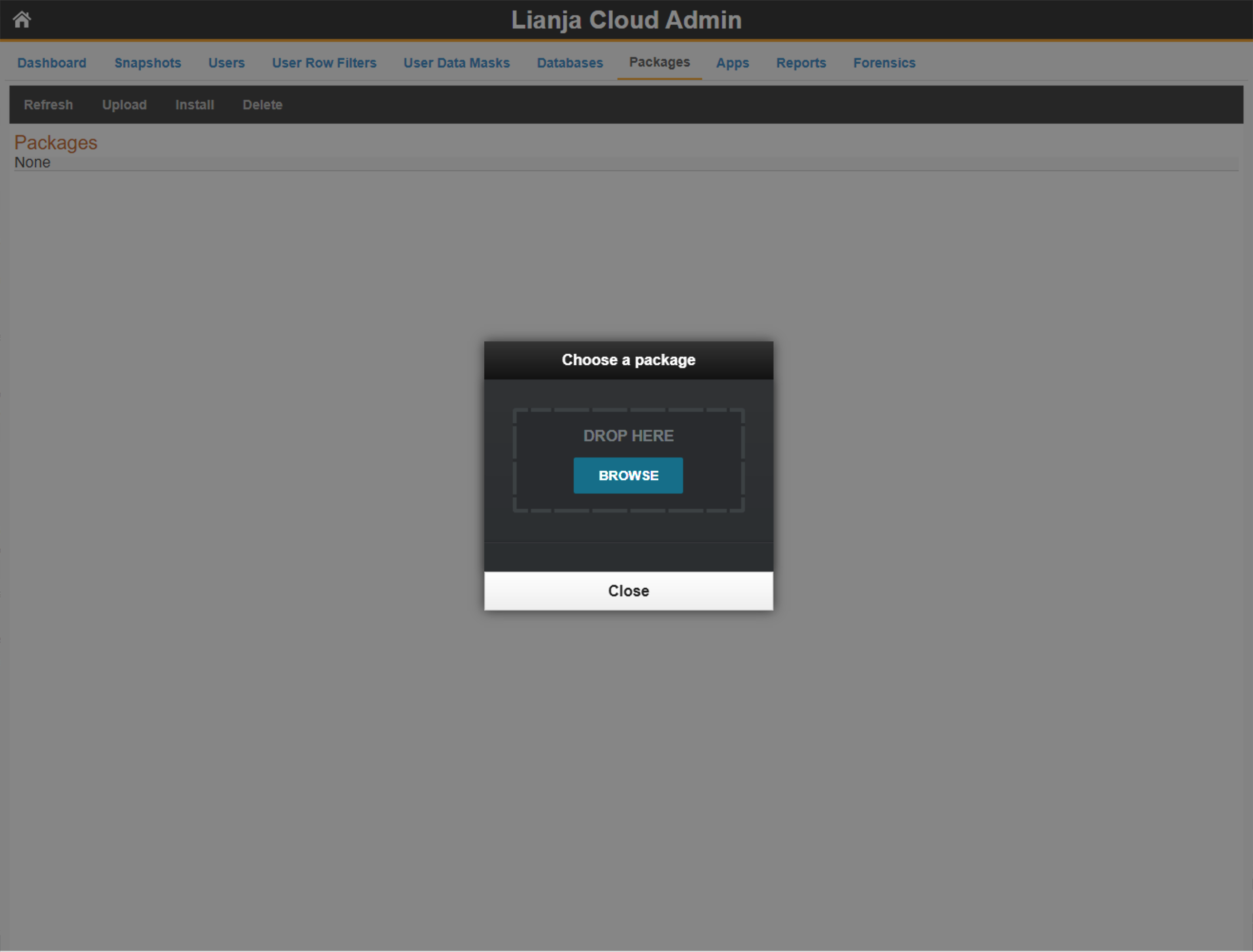 You can optionally create packages and upload them into Lianja Cloud using the Lianja Admin Console. This is the recommended method.